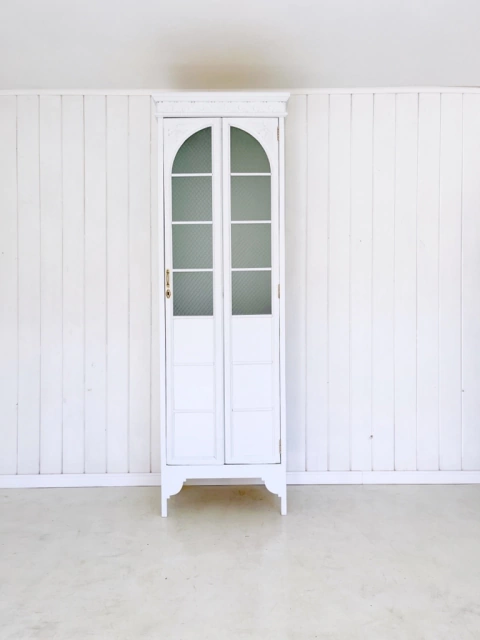 Antiguo Ropero pintado en color gris. Herrajes de bronce y puertas con vidrios esmerilados originales. Cuenta con un barral y estante. Utilizable como roperito de niños, y también para el ingreso de una casa, ideal para dejar abrigos y calzados!!! Medidas: 2,7 mt de alto 70 cm de ancho y 45 cm de profundidad. EL DATO: El valor aquí publicado corresponde a abonar con 12 cuotas. En efectivo depósito o transferencia bancaria hacemos un 20% de descuento. Embalaje sin cargo adicional. Hacemos envíos a todo el país ¡Consúltanos!